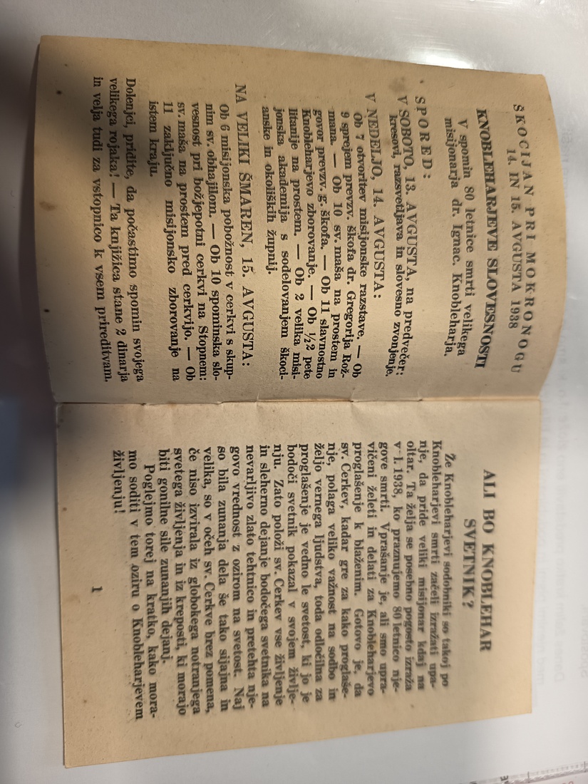 Pred 88 leti so torej potekale v Škocjanu 3-dnevne slovesnosti v ta namen in kot je vidno iz te brušurice, je na teh slovesnostih bil nazoč škof dr. Gregorij Rožman, ki je podprl prizadevanja za postopek za beatifikacijo Ignacija Knobleharja.