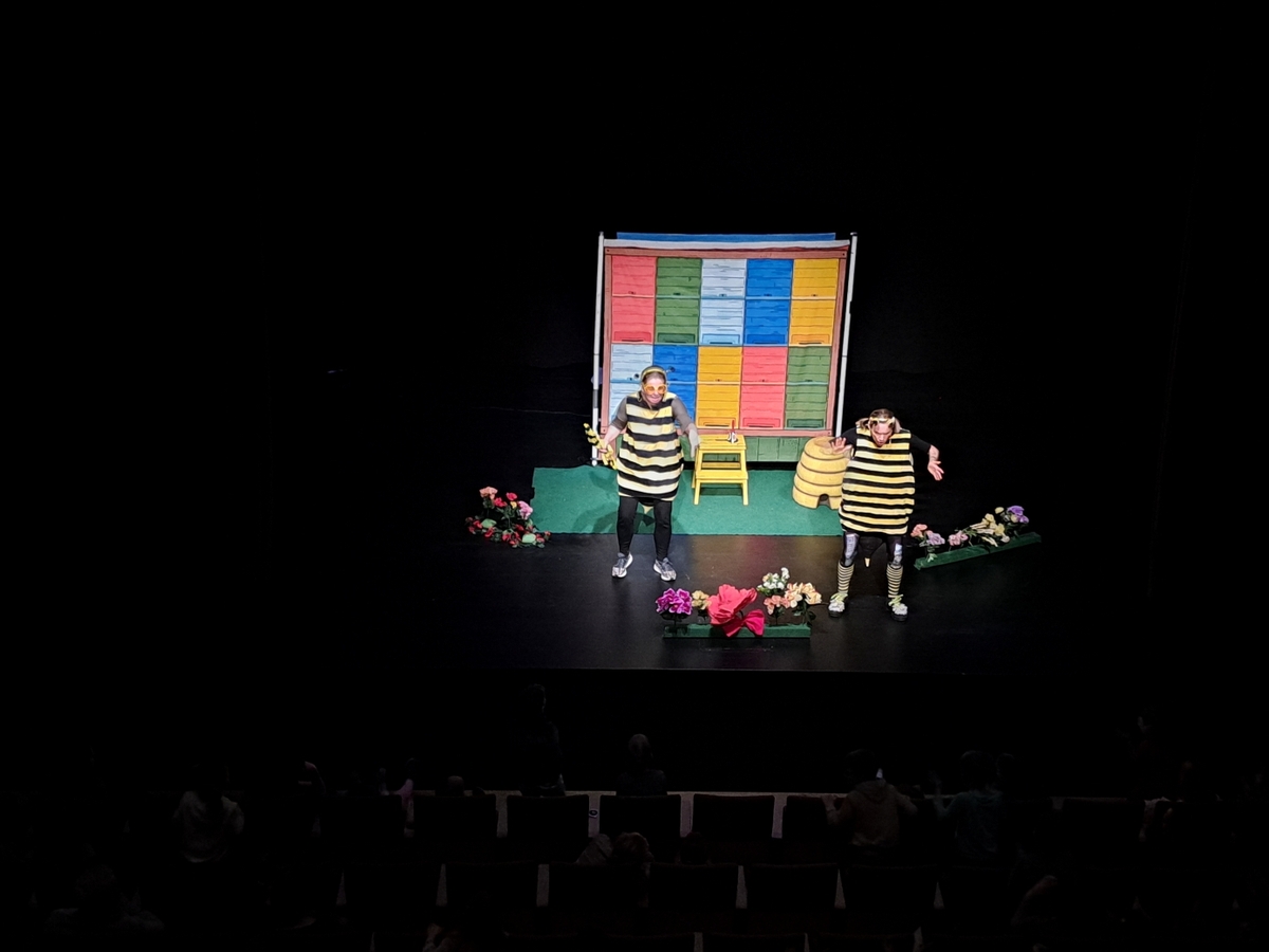 Na odru se je zaiskrila živahna in barvita zgodba o navihani čebelici, ki se je znašla v veliki nevarnosti – krožila je informacija, da jo želi pojesti strašni sršen! A čebelica se ni predala. S svojo iznajdljivostjo, pogumom in s strastnim sodelovanjem otrok iz občinstva, ki so jo spodbujali, usmerjali, ji mahali in ji pomagali najti pravo pot, je uspela premagati nevarnost. Gledališka igra je bila izjemno dinamična, polna glasbe, gibanja, humorja in topline, igralki pa sta z izjemnim občutkom vodili mlade gledalce skozi svet čebelje pustolovščine.