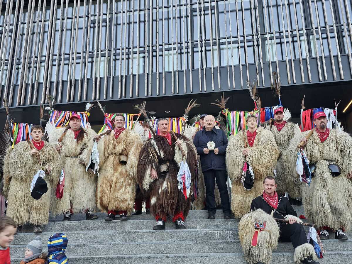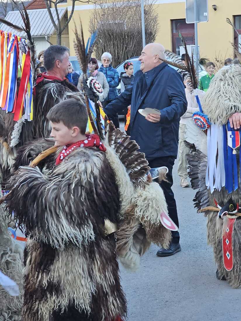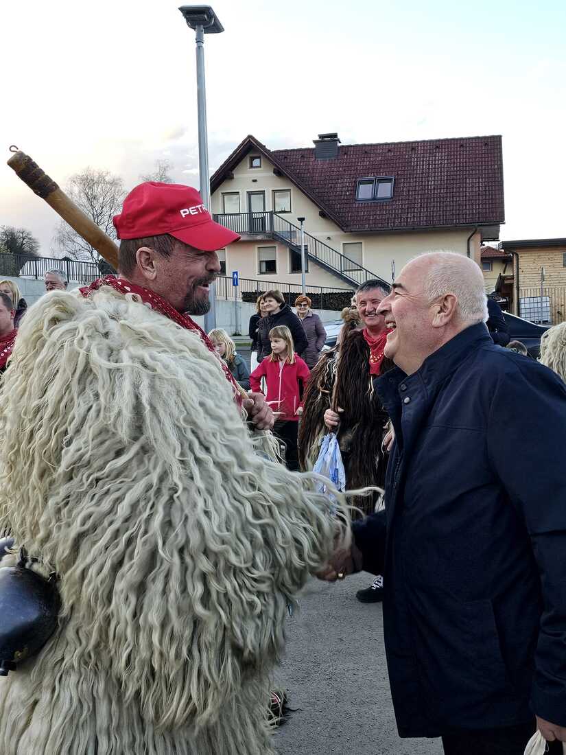 Kurente je sprejel in pozdravil župan Jože Kapler, ki jim je ob tej priložnosti izročil tudi manjše darilo. V zahvalo za gostoljubje so kurenti Občini podarili lesen spominek v obliki kurenta, ki bo trajen spomin na njihov obisk.