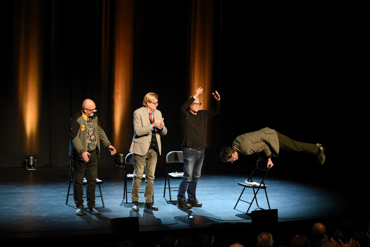 V dvorani je prevladoval smeh. Tisti pristni, trebušni. Občinstvo je ploskalo – ker so želeli, in ker so lahko. Na odru pa štirje mojstri, ki dokazujejo, da humor ne pozna rojstnega lista. Pozna le kilometrino.
