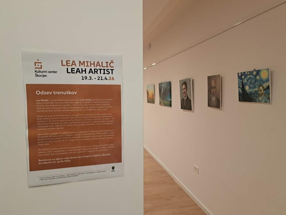 V četrtek, 19. marca 2026, je konferenčna dvorana Kulturnega centra Škocjan zaživela v posebnem, skoraj intimnem vzdušju. Odprtje razstave Odsev trenutkov avtorice Lee Mihalič, ki ustvarja pod imenom Leah Artist, ni bilo le dogodek, temveč doživetje – preplet umetnosti, tišine, pogovorov in tistih drobnih trenutkov, ki jih pogosto spregledamo.