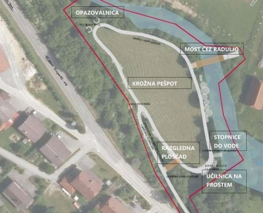 Projekt vključuje celostno in trajnostno ureditev območja ob Radulji v Škocjanu pod Metelkovim domom. V okviru novih ureditev bo preurejena dostopna pot, ob njej razgledna ploščad kot razgledišče za druženje in opazovanje okolice. Na travniku ob Radulji bo urejena krožna peščena pot. Ob krožni poti bosta urejeni dve izobraževalni točki: tiha opazovalnica in učilnica na prostem ter stopnice za dostop do Radulje. Narejen bo tudi most čez Raduljo, ki bo namenjen za uporabopešcem in kolesarjem, ki bo omogočil prehod tudi invalidom in vozičkom. Programske aktivnosti operacije bodo osredotočene na izobraževalne vsebine (izobraževanja, delavnice), kakor tudi na izvedbo usposabljanja za interpretatorje ter oblikovanje programa interpretacije območja ob Radulji. Območje ob Radulji bo postalo tudi zelena sprehajalno-rekreacijska površina.