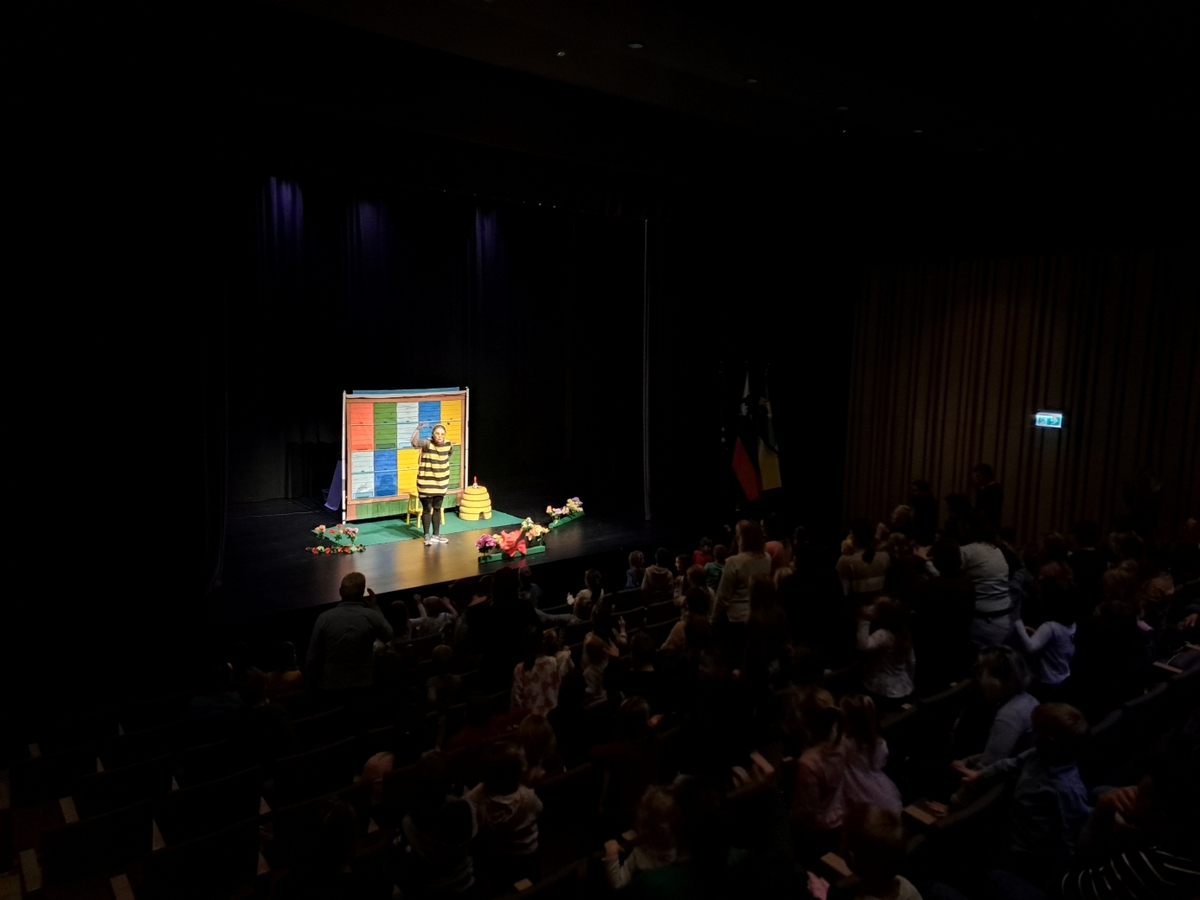 Eden najlepših trenutkov je bil zagotovo ta, ko so otroci glasno, skoraj enoglasno, opozarjali čebelico na nevarnost ali jo usmerjali proti varni rešitvi. Vzdušje je bilo napeto, veselo in polno energije – takšno, ki jo lahko ustvari le neposredni stik med igralci in občinstvom.