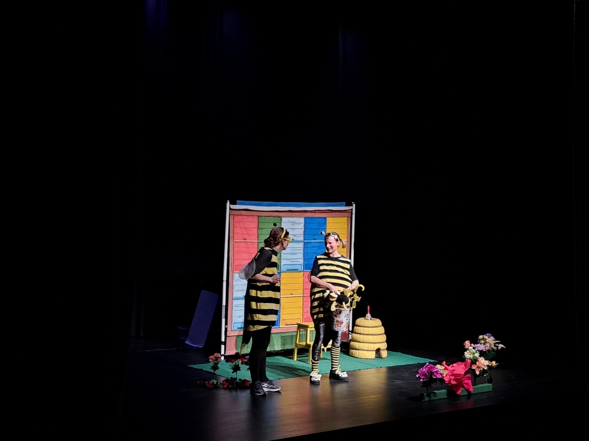 Na odru se je zaiskrila živahna in barvita zgodba o navihani čebelici, ki se je znašla v veliki nevarnosti – krožila je informacija, da jo želi pojesti strašni sršen! A čebelica se ni predala. S svojo iznajdljivostjo, pogumom in s strastnim sodelovanjem otrok iz občinstva, ki so jo spodbujali, usmerjali, ji mahali in ji pomagali najti pravo pot, je uspela premagati nevarnost. Gledališka igra je bila izjemno dinamična, polna glasbe, gibanja, humorja in topline, igralki pa sta z izjemnim občutkom vodili mlade gledalce skozi svet čebelje pustolovščine.